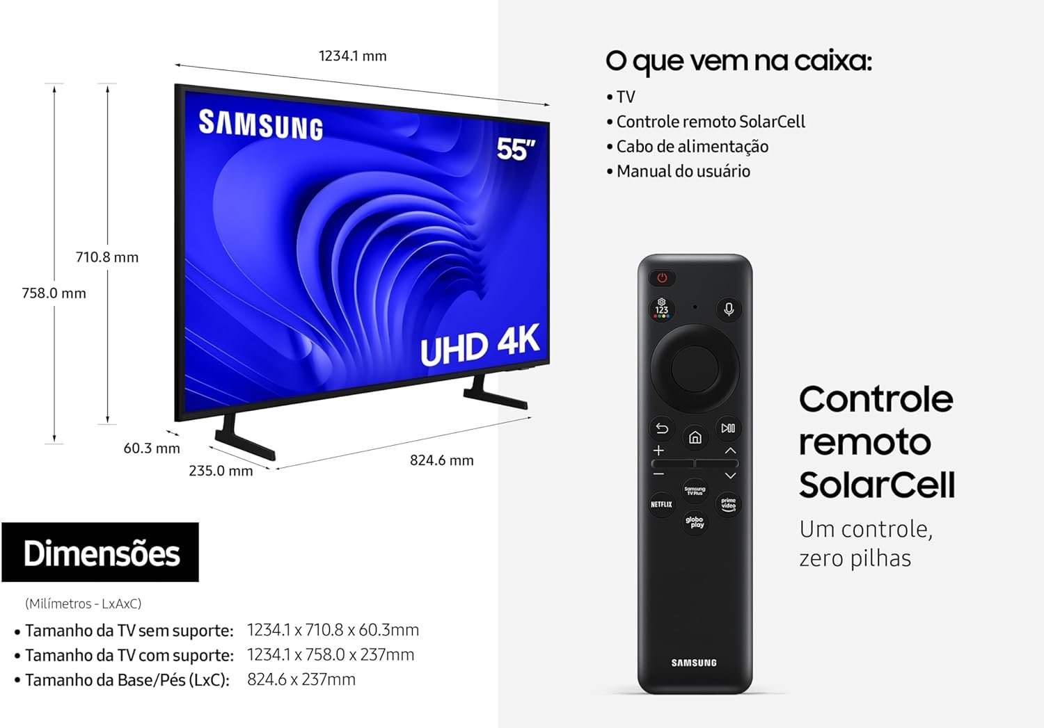 Samsung Smart TV 55″ UHD 4K 55DU7700 – Processador Crystal 4K, Gaming Hub